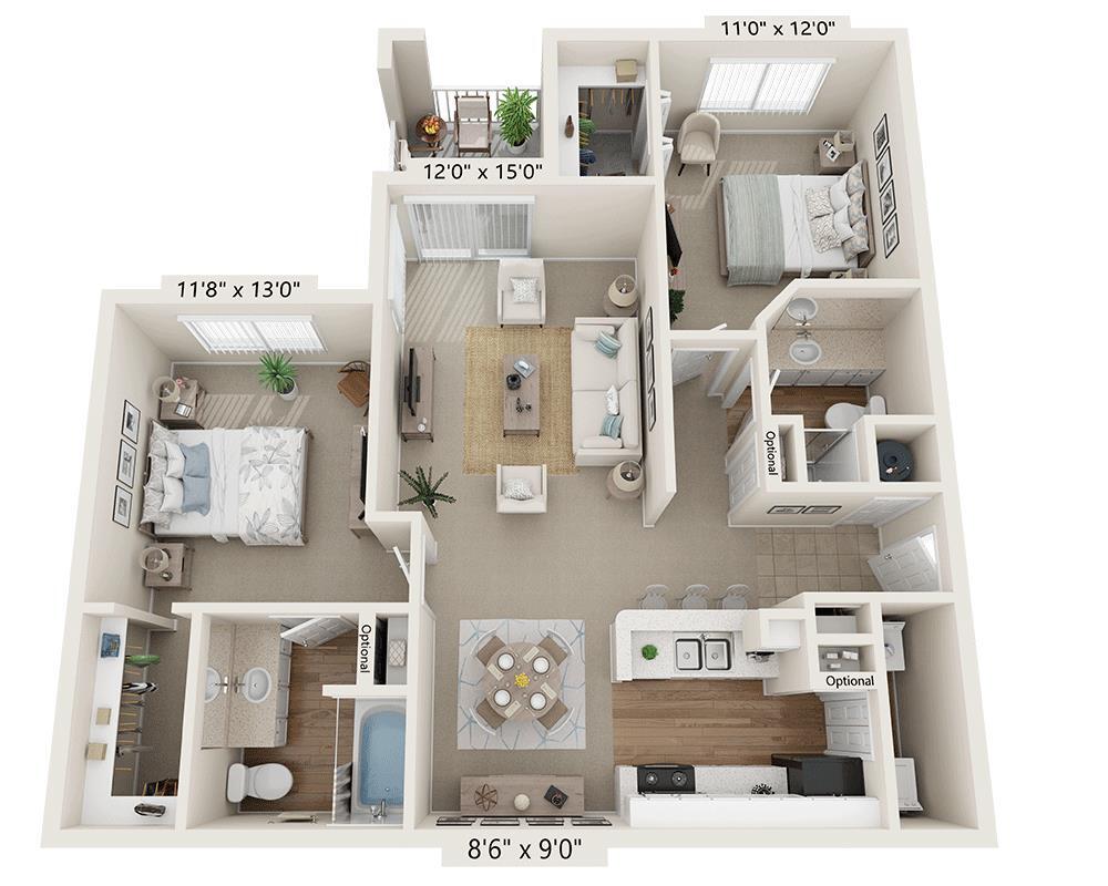 Azalea - Floorplan 1 Apartment Unit: 2-434Apartment Model: Azalea$1,8591 Bedroom, 1 Bath, 771 sq ftAvailable February 14, 2026FloorplansPhotos![]()