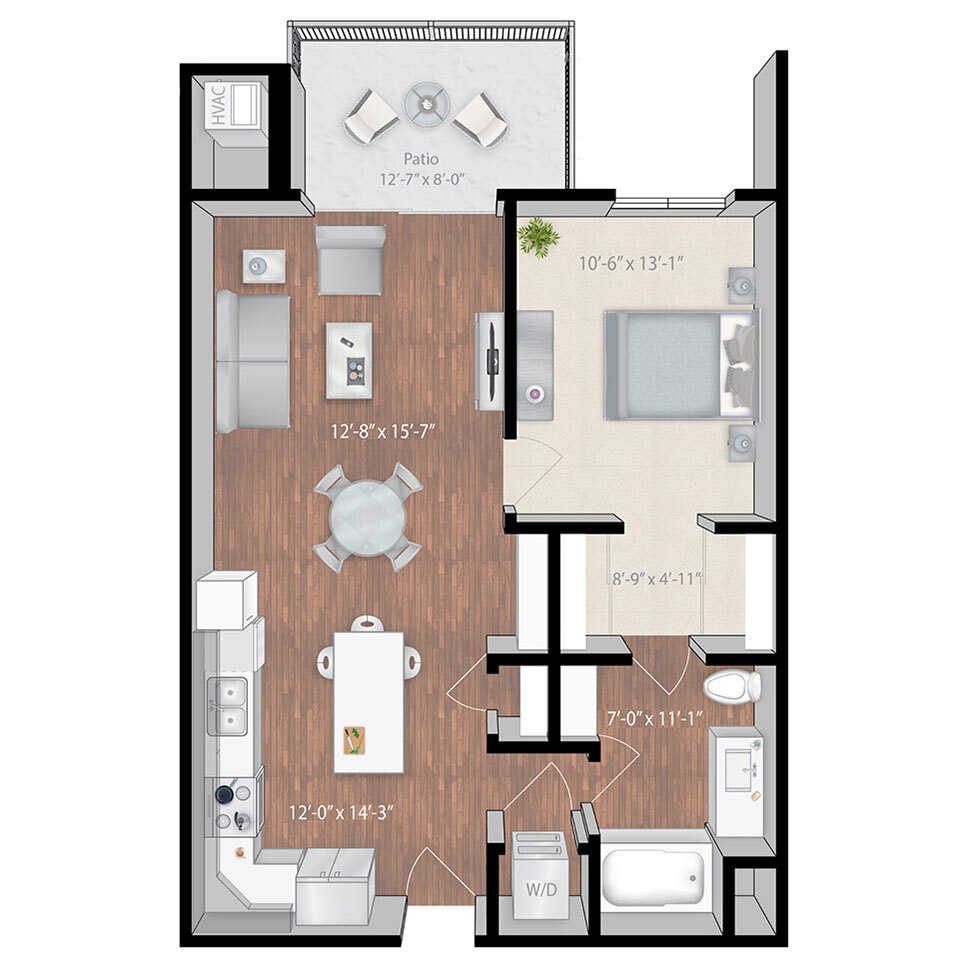 Studio, 1 Bath, 598 sq ftAvailability Details