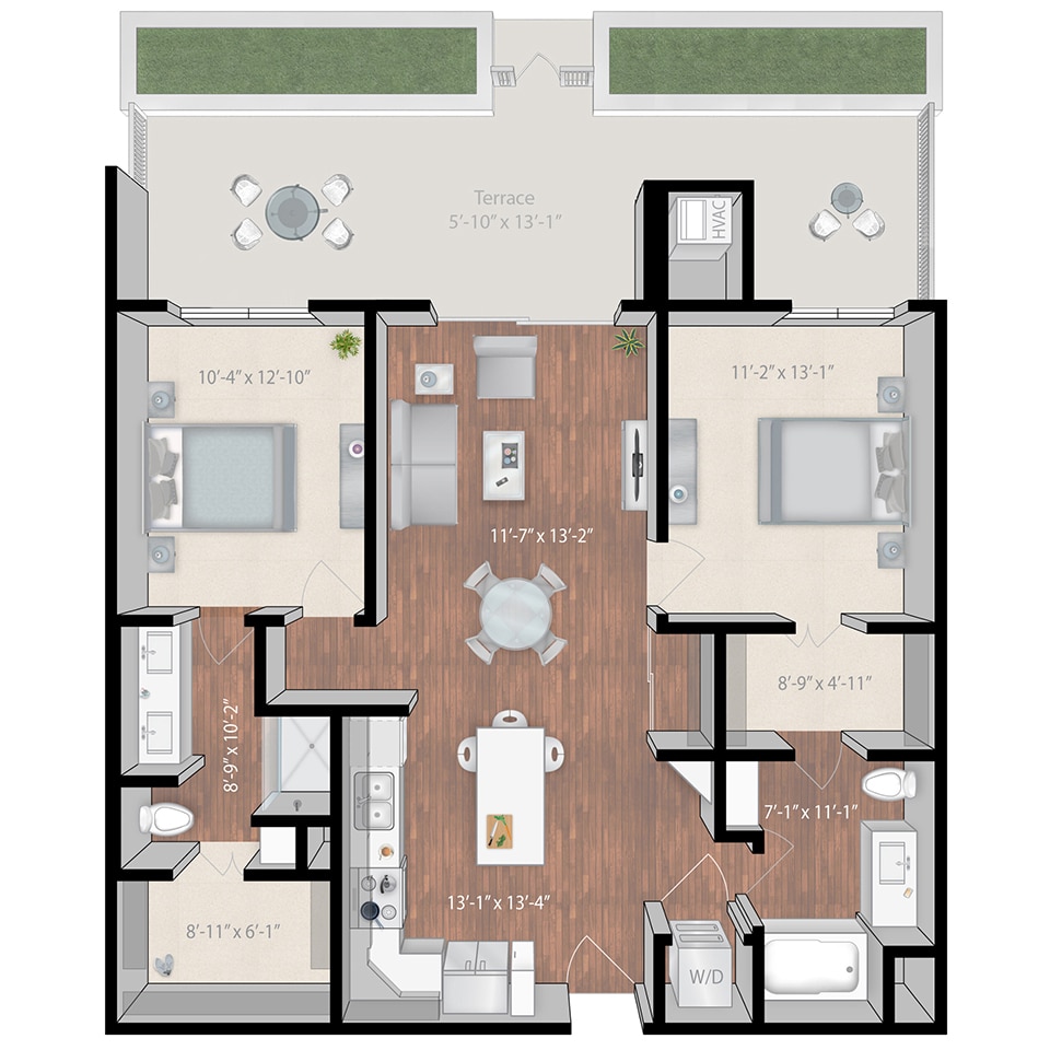 1 Bed, 1 Bath, 784-807 sq ftPlus FeesAvailable NowModel Gallery