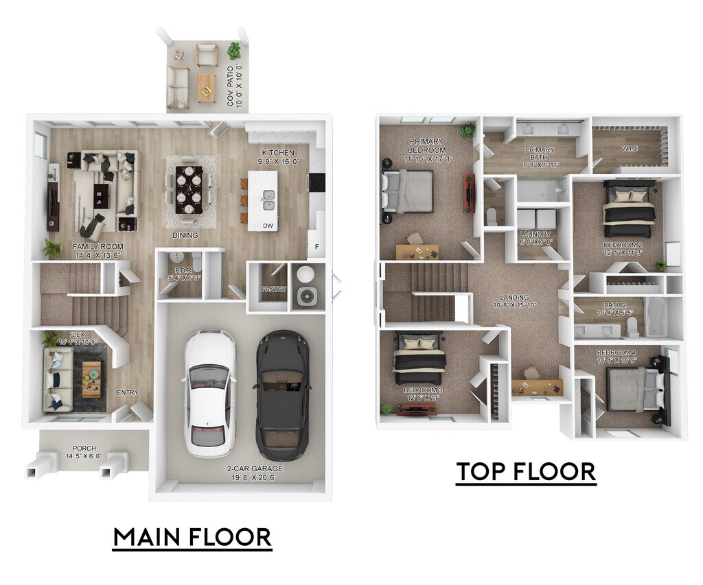 4 Beds, 2.5 Baths, 2046 sq ftAvailable NowModel Gallery