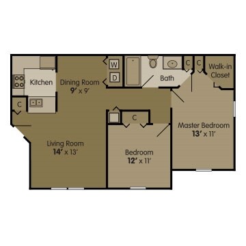 Apartment Model: 2x1-8432 Bedroom, 1 Bath, 843 sq ftUnavailable![]()