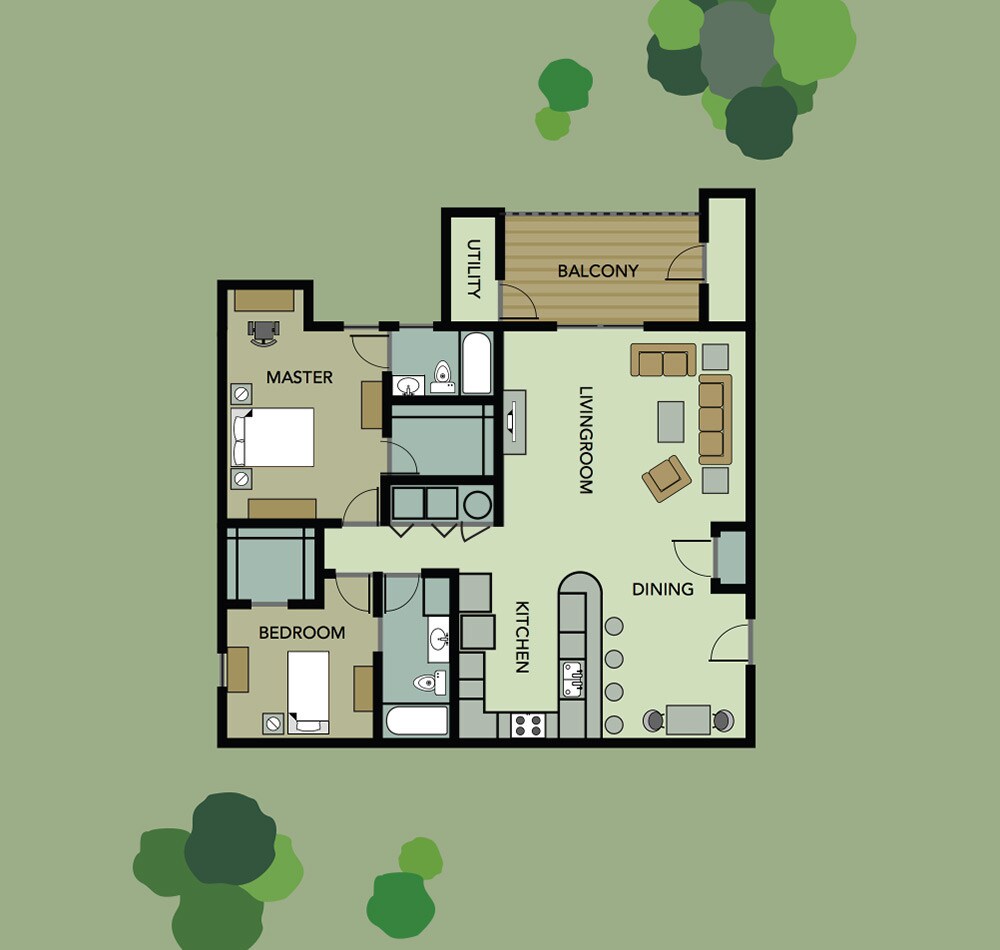 Apartment Model: Oak$1,8002 Bedroom, 2 Bath, 1330 sq ftUnavailable![]()
