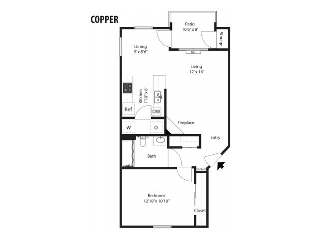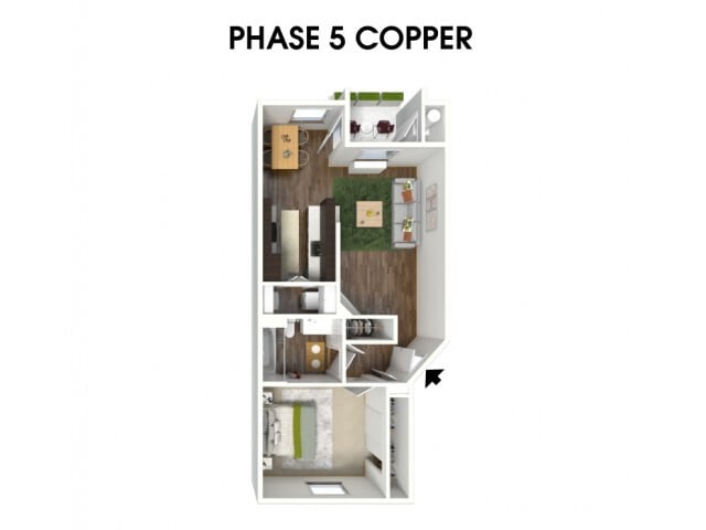 Apartment Model: CopperFrom $1,6151 Bedroom, 1 Bath, 713-737 sq ftAvailable Now![]()