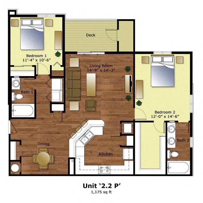 Apartment Model: Unit 2.2PFrom $1,7752 Bedroom, 2 Bath, 1175 sq ftAvailable Now![]()