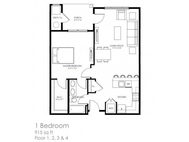 1 Bed, 1 Bath, 936 sq ftModel Gallery