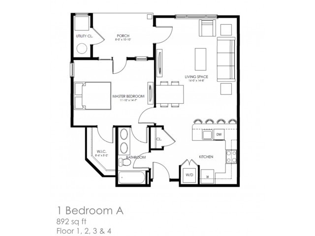 1 Bed, 1 Bath, 892 sq ftModel Gallery