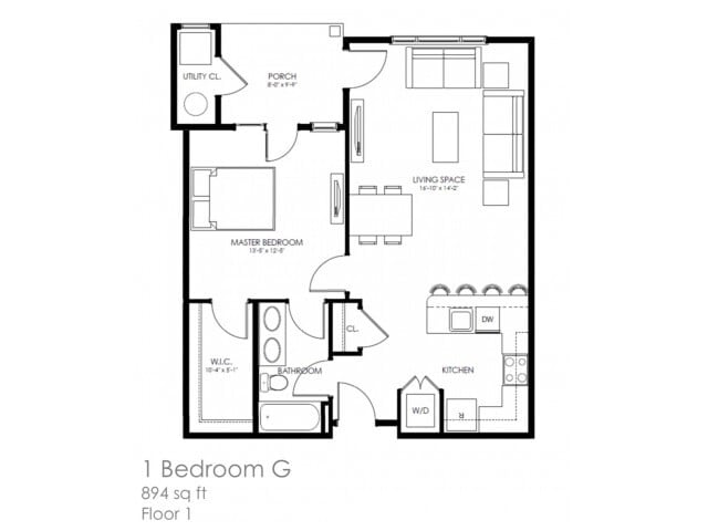 1 Bed, 1 Bath, 894 sq ftModel Gallery