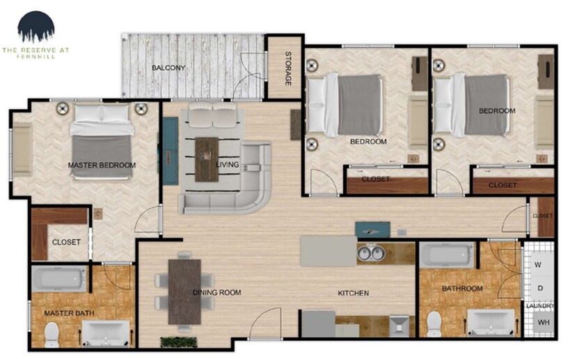 1 Bedroom to 3 Bedroom Apartments at The Reserve at Fernhill currently range from $1,501 to $2,320