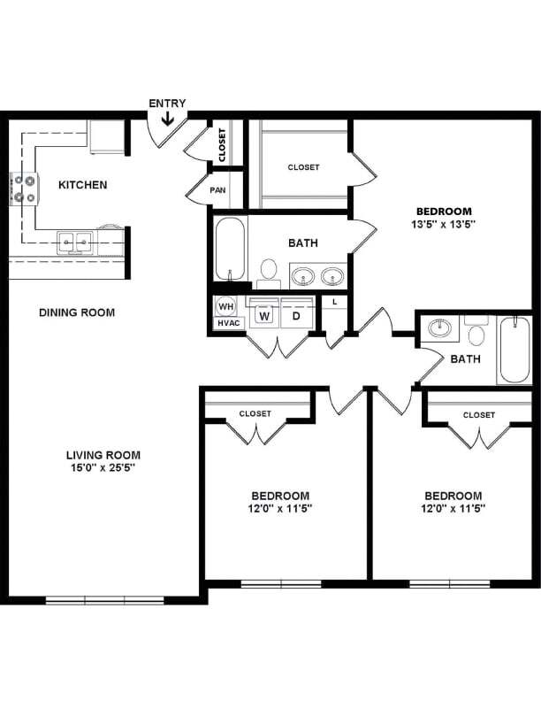 Annexe-Bouvier - Floorplan 2 Apartment Unit: 360-207Apartment Model: Annexe-Bouvier$1,0871 Bedroom, 1 Bath, 632 sq ftAvailable November 27, 2025Annexe-Chancellor