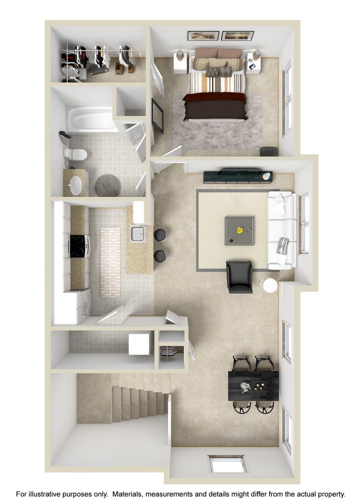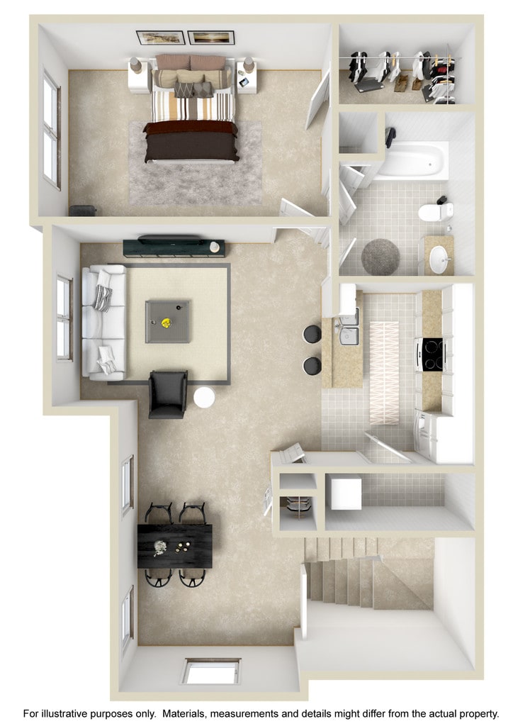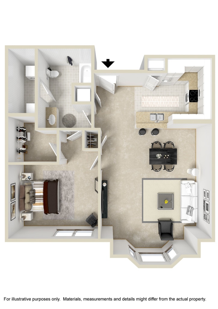 Apartment Model: 1 Bedroom 1 Bath w/ Attached GarageFrom $1,7301 Bedroom, 1 Bath, 802-881 sq ftAvailable Now![]() - 1 Bedroom 1 Bath w/ Attached Garage - Floorplan 1