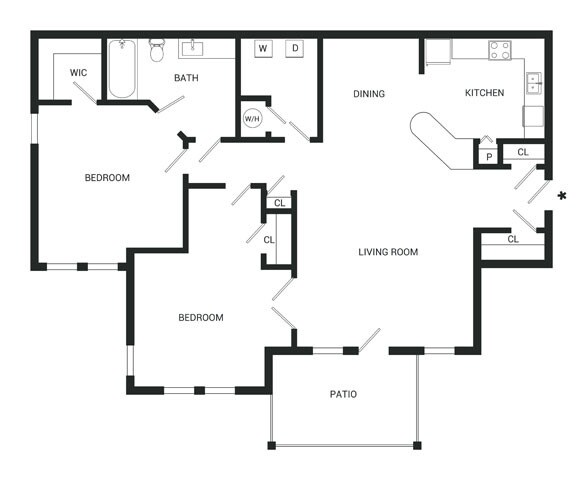 The Tuxedo - Floorplan 2 2 Bedrooms