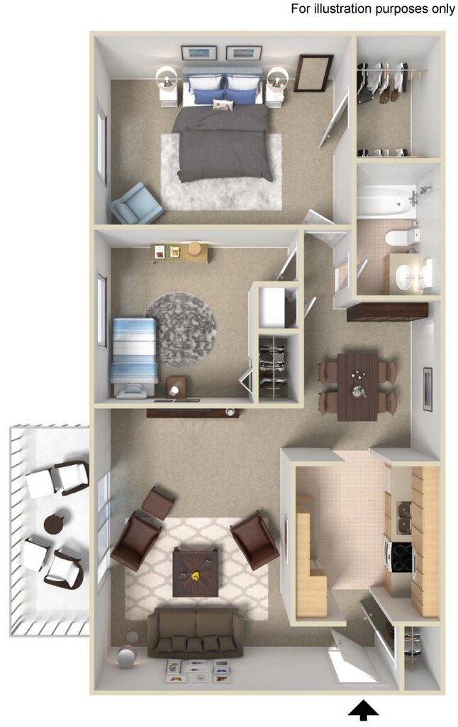 One Bedroom, One Bath - Floorplan 2 2 Bedrooms