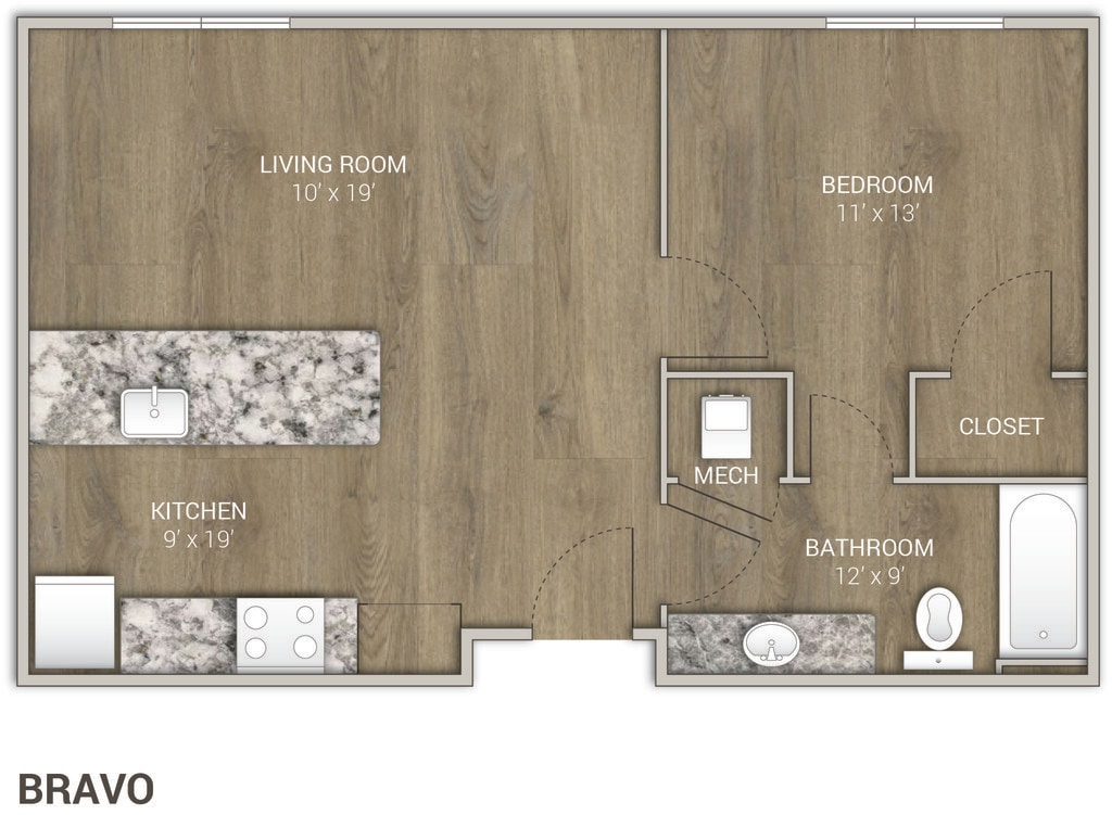 Apartment Model: Bravo1 Bedroom, 1 Bath, 640 sq ftUnavailable![]()