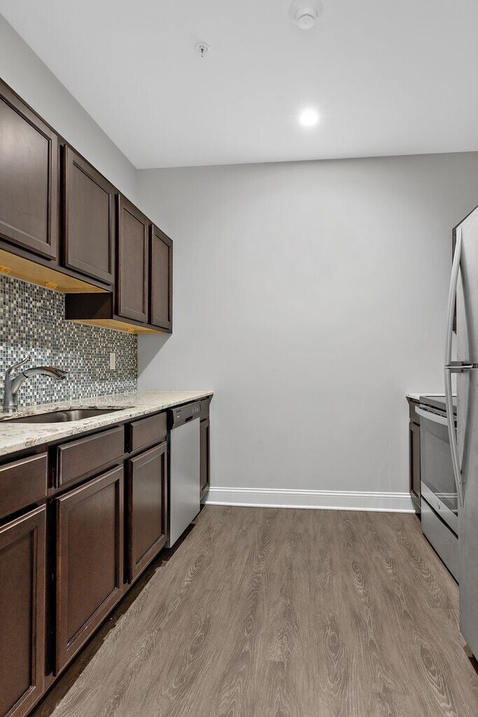 Oversized studio available! Granite counter tops, plank flooring, stainless steel appliances. Huge windows in living space make this unit bright and inviting. In unit washer and dryer. Each floor has garbage chute rooms. Roof top terrace with BBQ accessible by all residents (360 degree views!) Fully turfed and fenced in back yard, with dog run and putting green! Heated/Secured parking available for $200 per month ((Inquire about move in specials)). High speed internet and cable offered at a discount ($85 per month) Pets OK! $30 each per approved pet, per month. non refundable pet fee of $250 NO Security Deposits! $750 Non refundable admin fee due at time of lease signing.