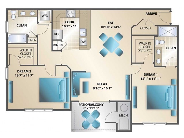 2 Beds, 2 Baths, 1202 sq ftAvailable NowModel Gallery