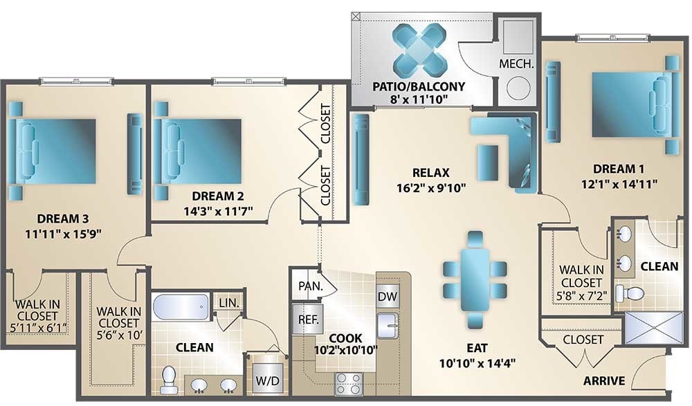 3 Beds, 2 Baths, 1505 sq ftAvailable Dec 12Model Gallery