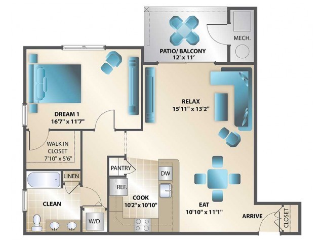 1 Bed, 1 Bath, 863 sq ftModel Gallery