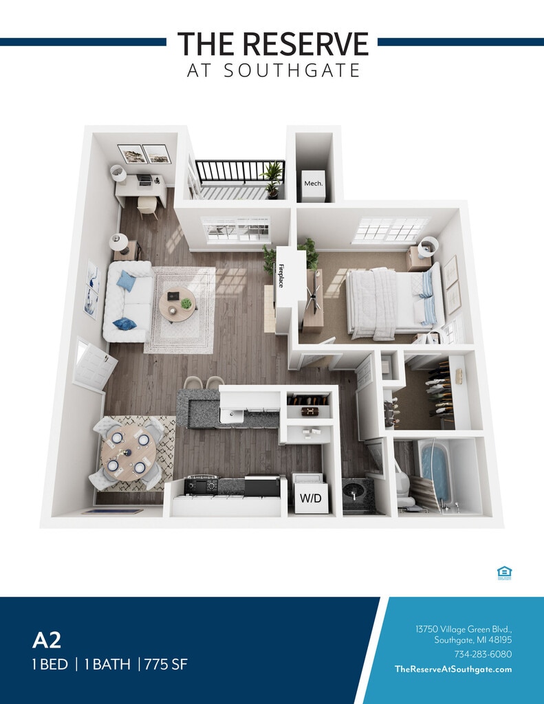 Apartment Model: 1A2From $1,2501 Bedroom, 1 Bath, 750 sq ftAvailable Now![]()