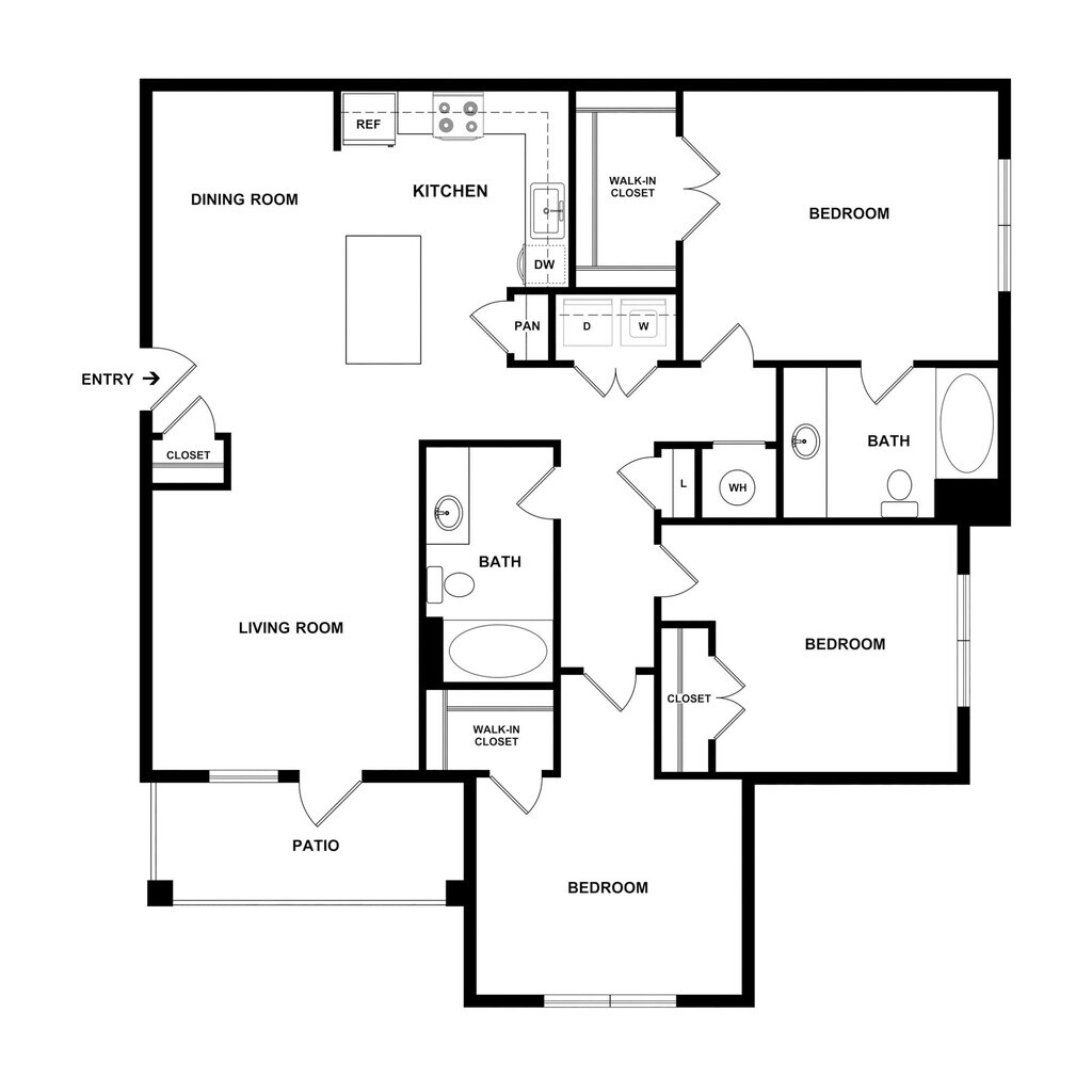 Apartment Model: 3 Bedroom 3A$1,3203 Bedroom, 2 Bath, 1332 sq ftAvailable Now![]()