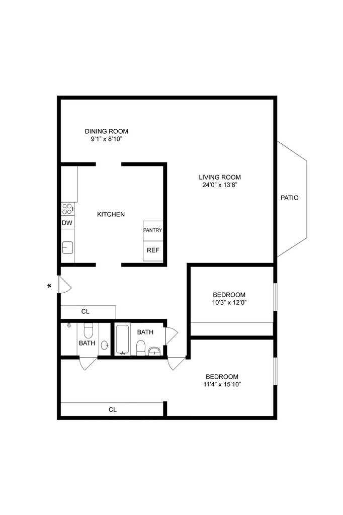 - Separate dining area; Abundant closet space