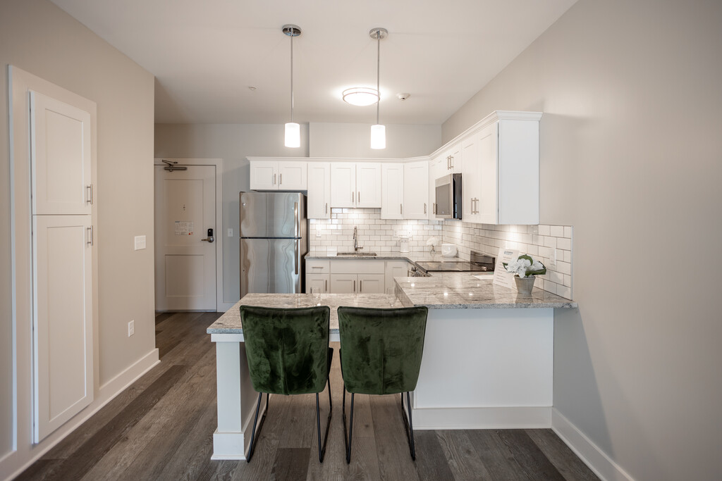 Luxury apartments with many community spaces. Granite counter tops, stainless steel appliances and In-unit laundry.