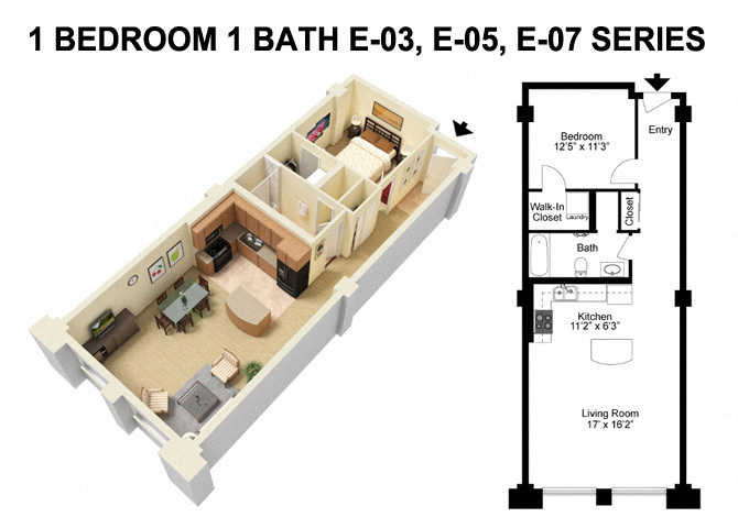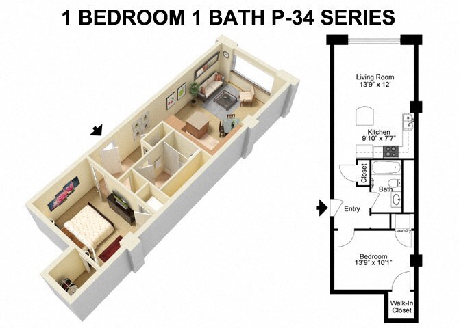 1 Bed 1 Bath - Prospect Avenue - Floorplan 4 ![]()