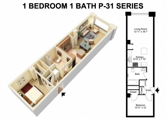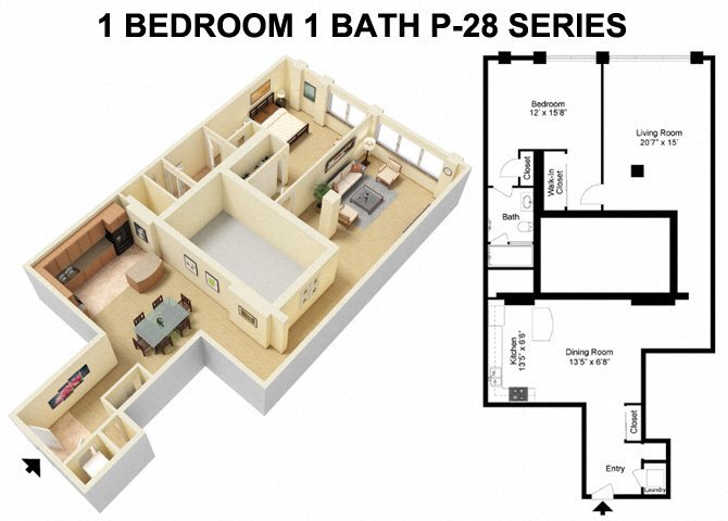 1 Bed 1 Bath - Prospect Avenue - Floorplan 3 ![]()