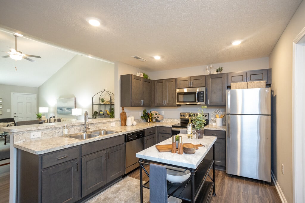 The Residences at Browns Farm redefines luxury where ranch-style floorplans, amenity-rich living and suburban-classic architecture come together. Located in Grove City, Ohio, Browns Farm was thoughtfully designed for residents to experience life to the fullest. These single-story apartments for rent offer up to 1,383 square feet of living space, cathedral ceilings, attached two-car garages and private outdoor patios.