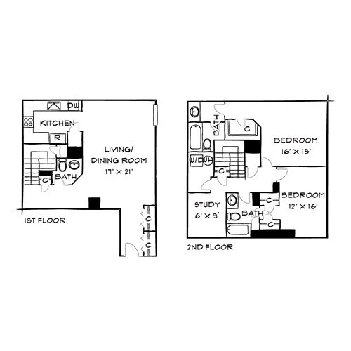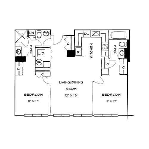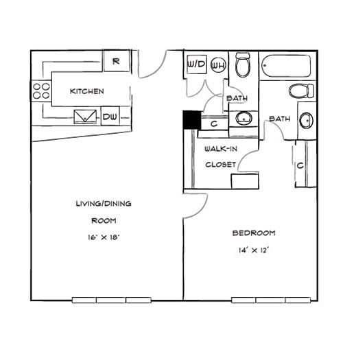 1 Bed, 1 Bath, 822-828 sq ftAvailable NowModel Gallery