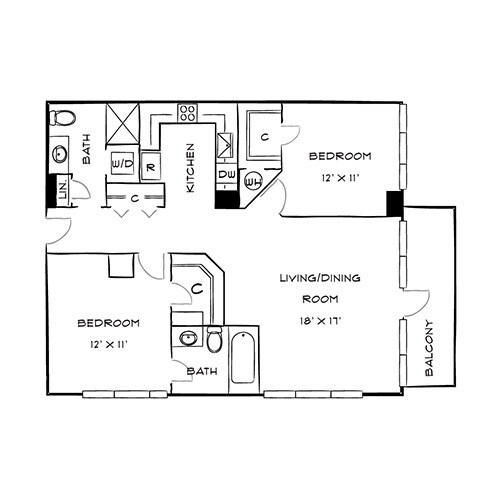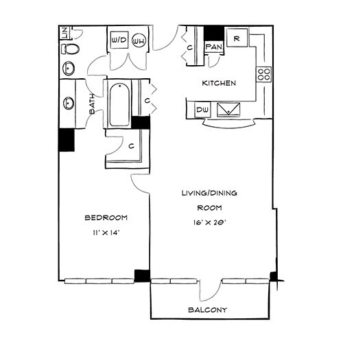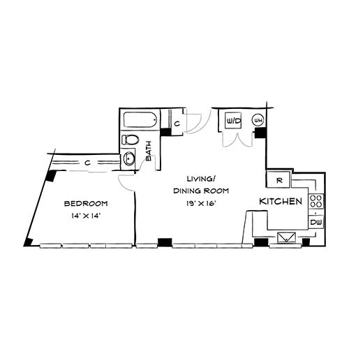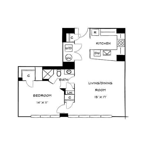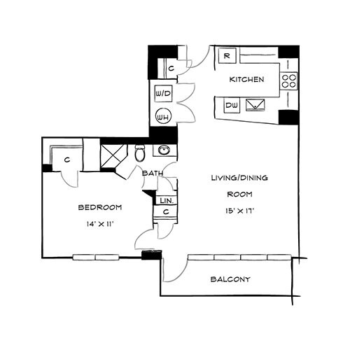 Apartment Model: Laurel Premier$2,3551 Bedroom, 1 Bath, 719-736 sq ftAvailable Now![]()