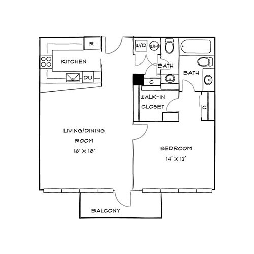 1 Bed, 1 Bath, 689 sq ftAvailable NowModel Gallery