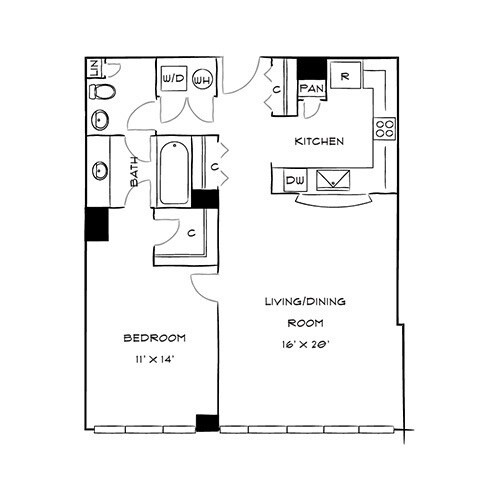 Studio, 1 Bath, 550 sq ftAvailable NowModel Gallery