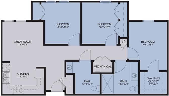3 Beds, 2 Baths, 1012 sq ftModel Gallery