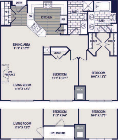 Apartment Model: Claremont2 Bedroom, 2 Bath, 1368 sq ftAvailable January 7, 2026![]()