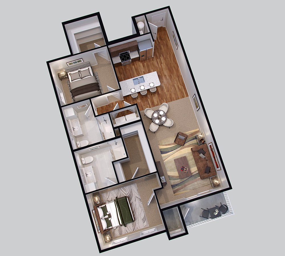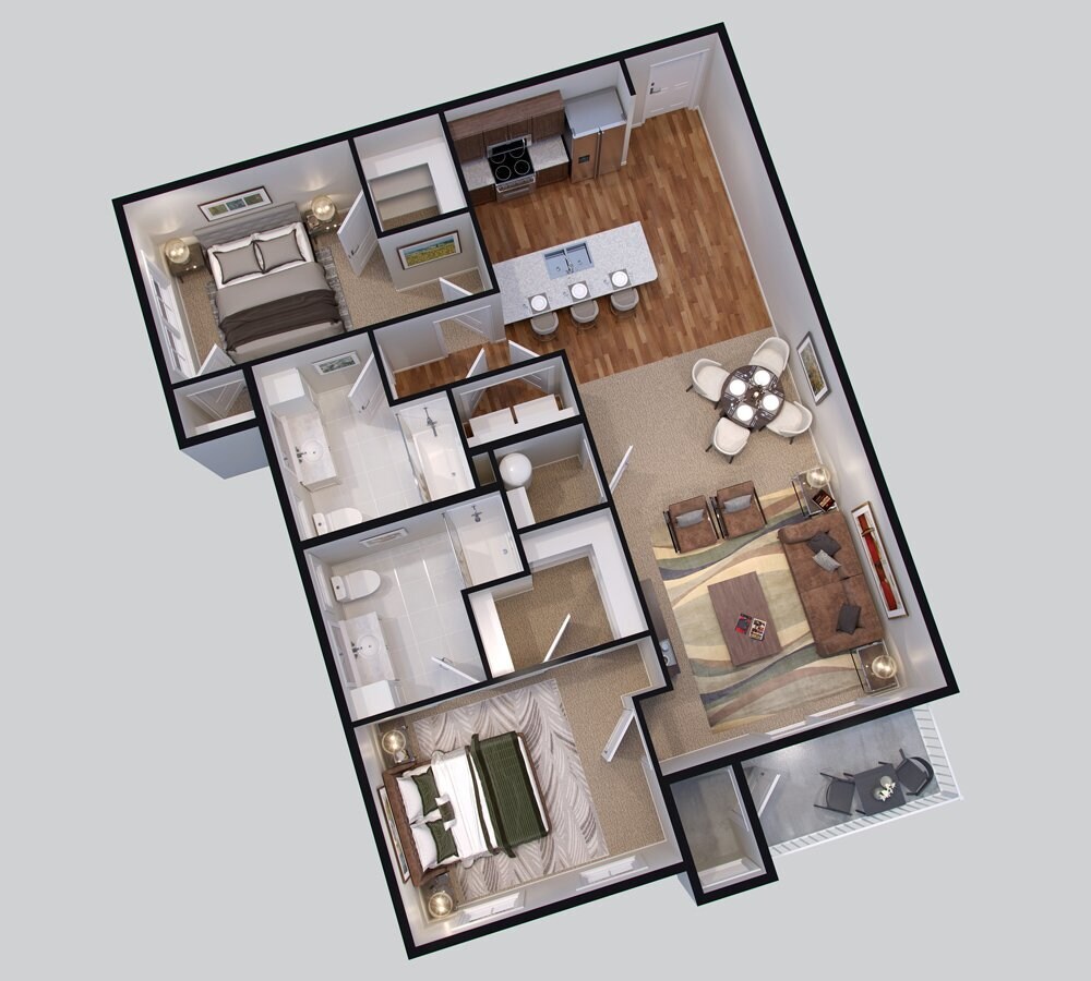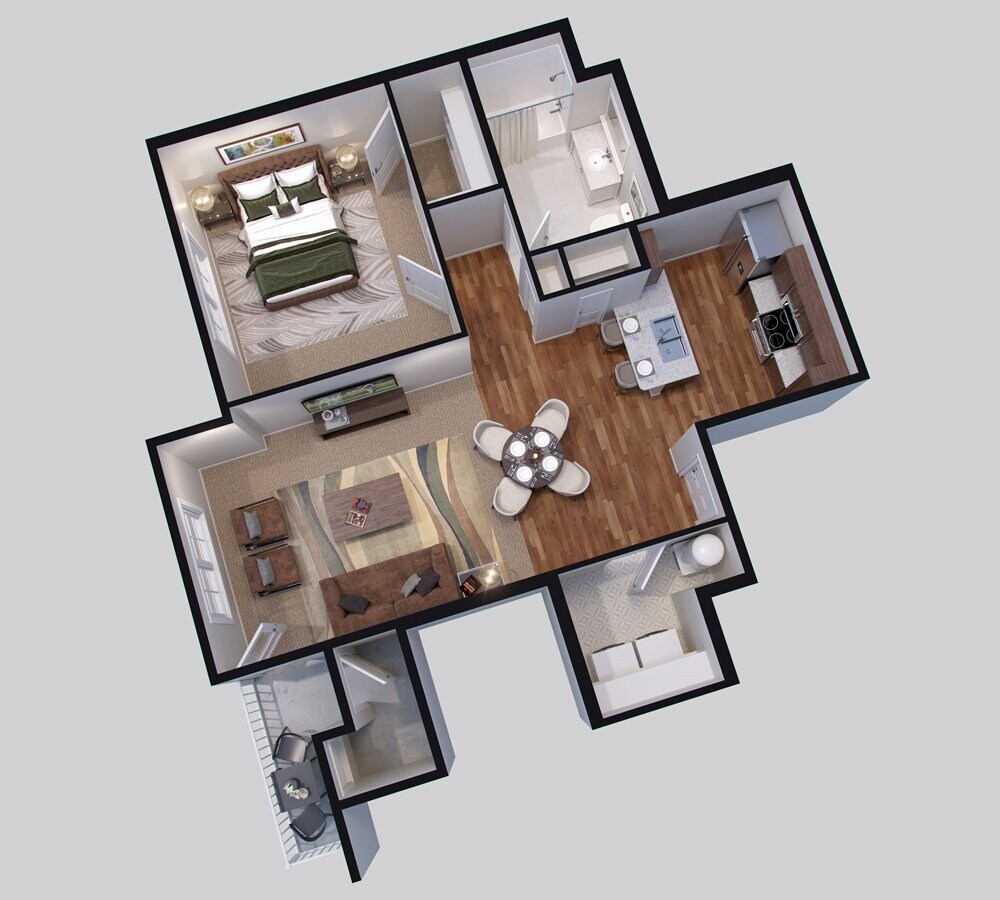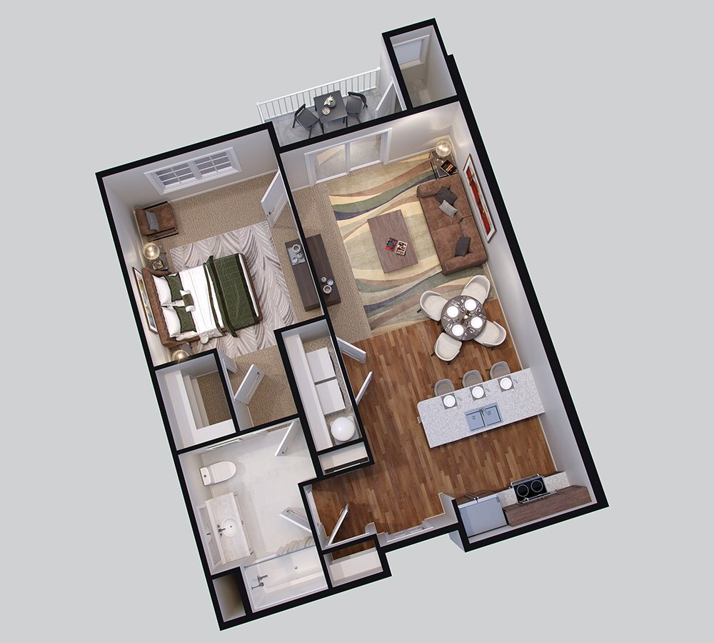 1 Bed, 1 Bath, 806 sq ftModel Gallery