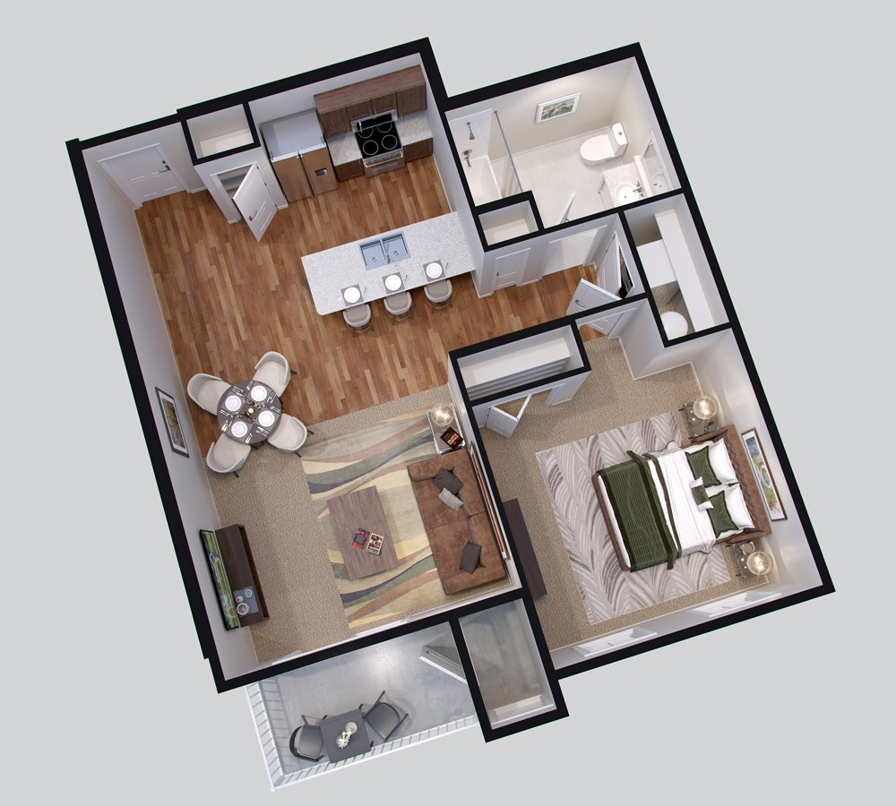 1 Bed, 1 Bath, 552 sq ftModel Gallery