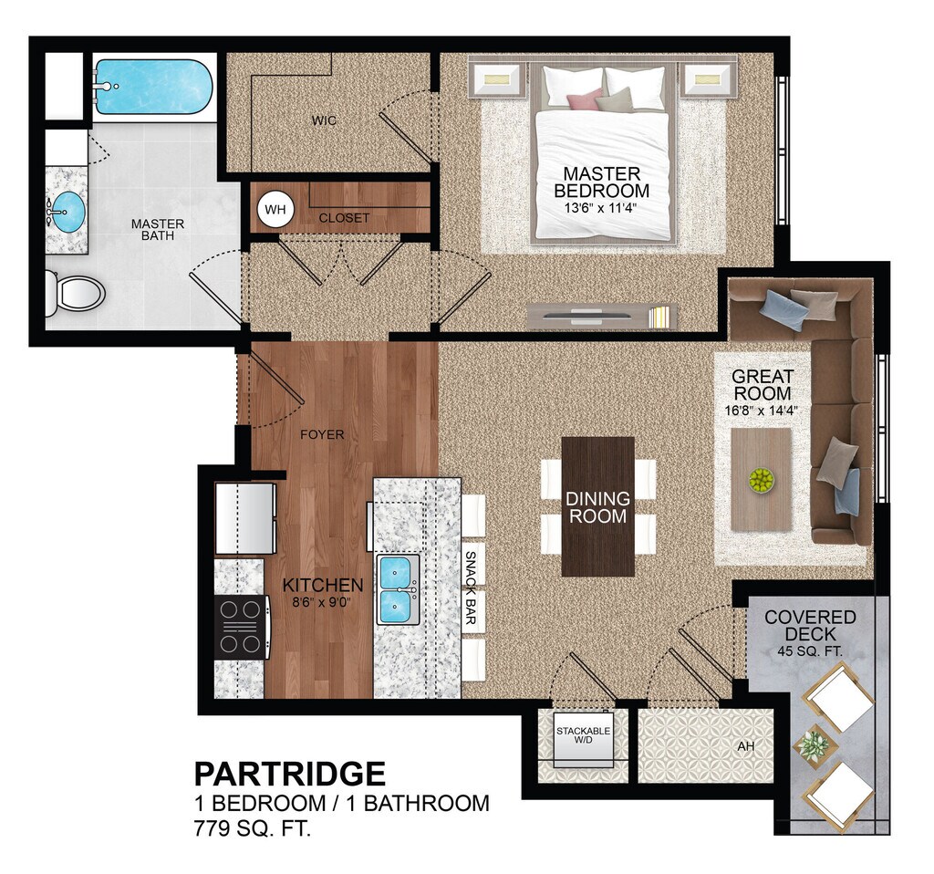 Apartment Model: PartridgeFrom $1,6051 Bedroom, 1 Bath, 779 sq ftUnavailable![]()