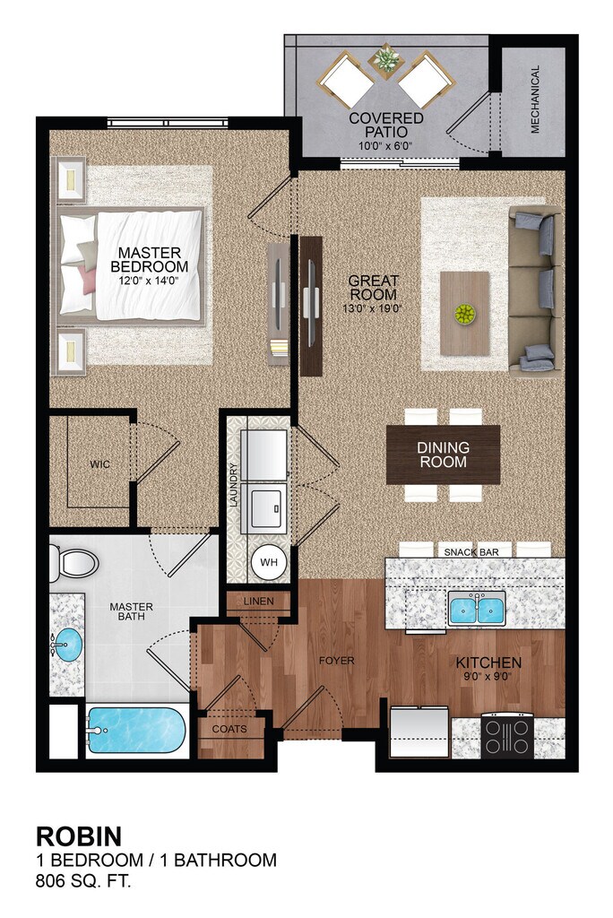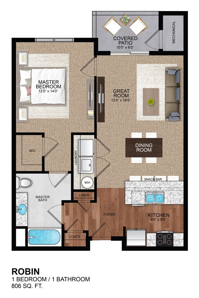 Apartment Model: RobinFrom $1,6851 Bedroom, 1 Bath, 806 sq ftUnavailable![]()