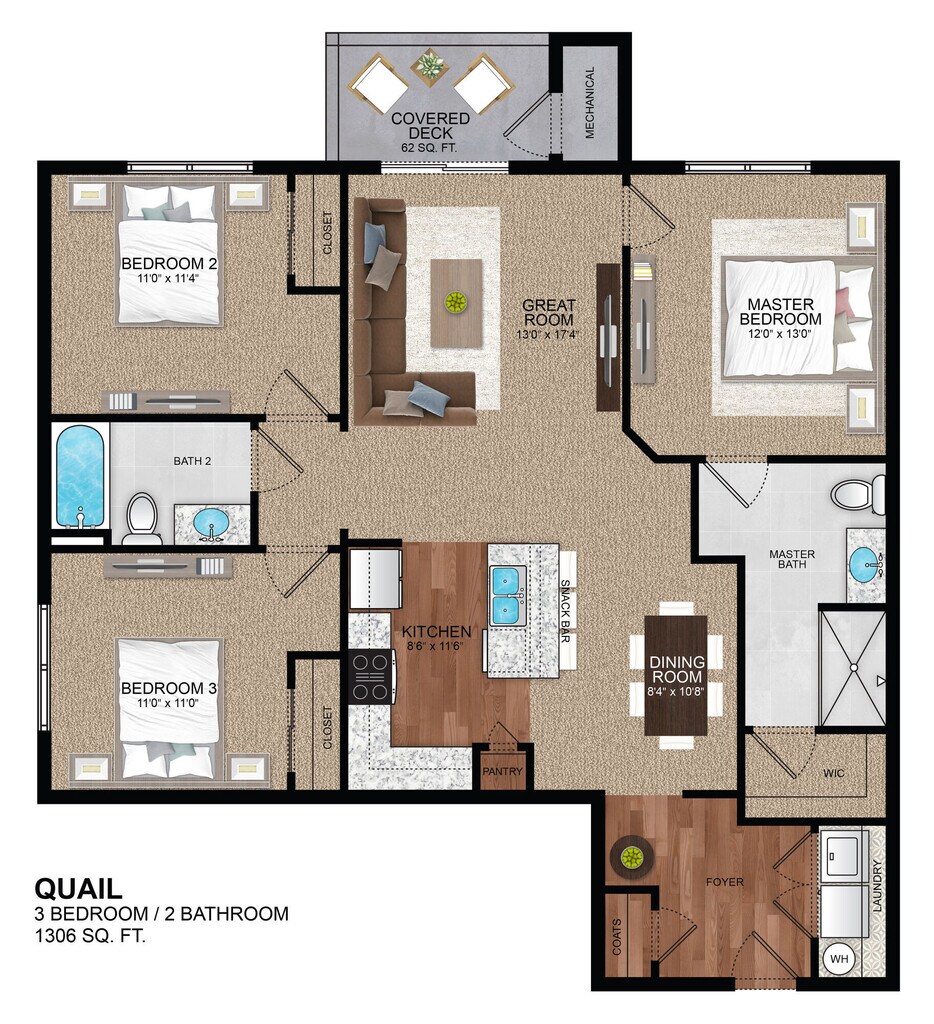 Apartment Model: PheasantFrom $1,3501 Bedroom, 1 Bath, 552 sq ftUnavailable![]()