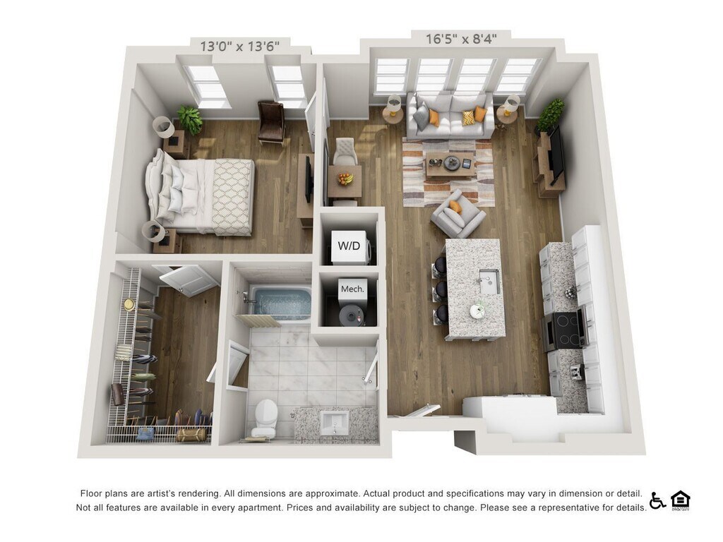 1 Bed, 1 Bath, 675 sq ftModel Gallery
