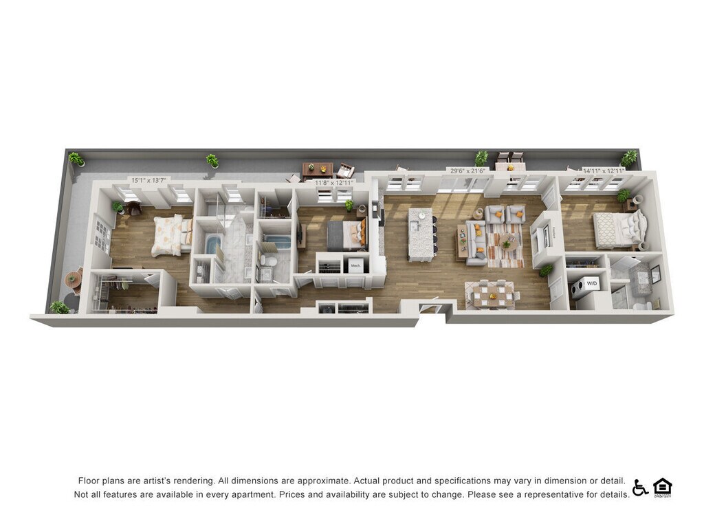 Apartment Model: E1From $2,3071 Bedroom, 1 Bath, 675 sq ftAvailable Now![]()