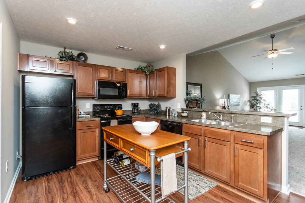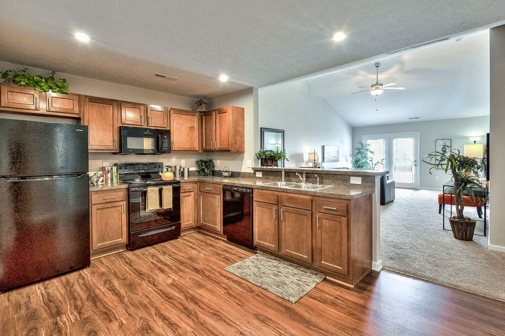 The Residences at Heritage Town Center redefines luxury where ranch-style floorplans, amenity-rich living and suburban-classic architecture come together. Located in Pataskala, Ohio, Heritage Town Center was thoughtfully designed for residents to experience life to the fullest. These single-story apartments for rent offer up to 1,383 square feet of living space, cathedral ceilings, attached two-car garages and private outdoor patios.
