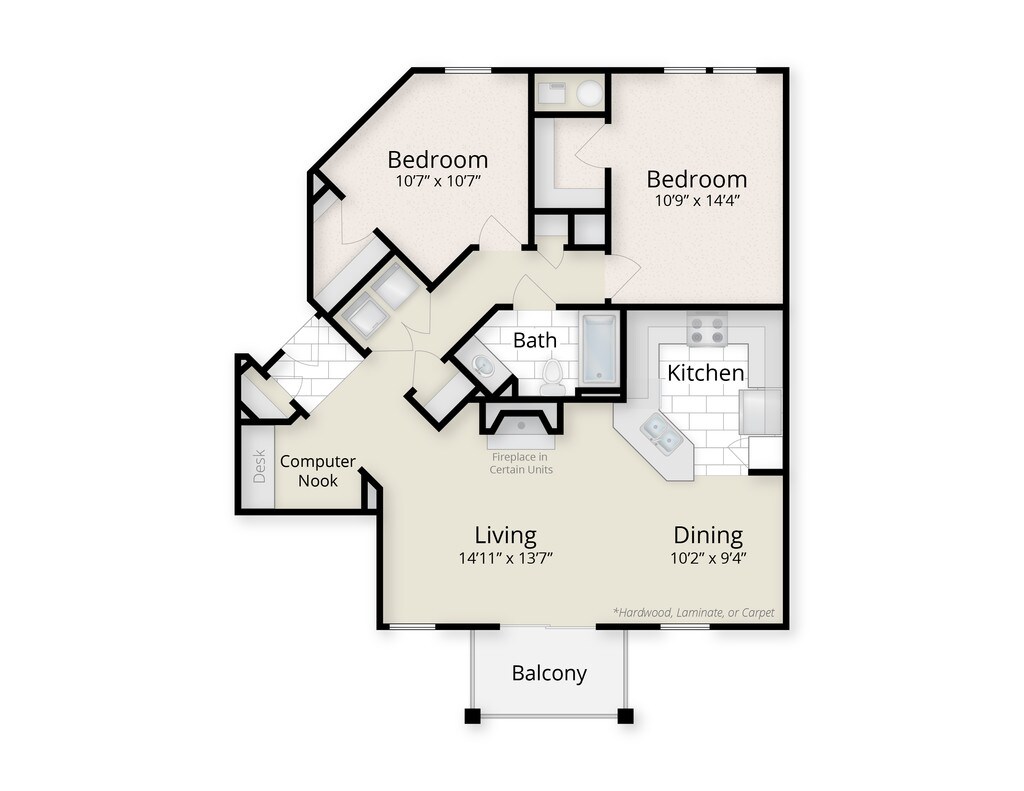 2 Beds, 2 Baths, 1200-1497 sq ftAvailable NowLargest 2 BedroomThis is the largest 2 Bedroom at this PropertyModel Gallery