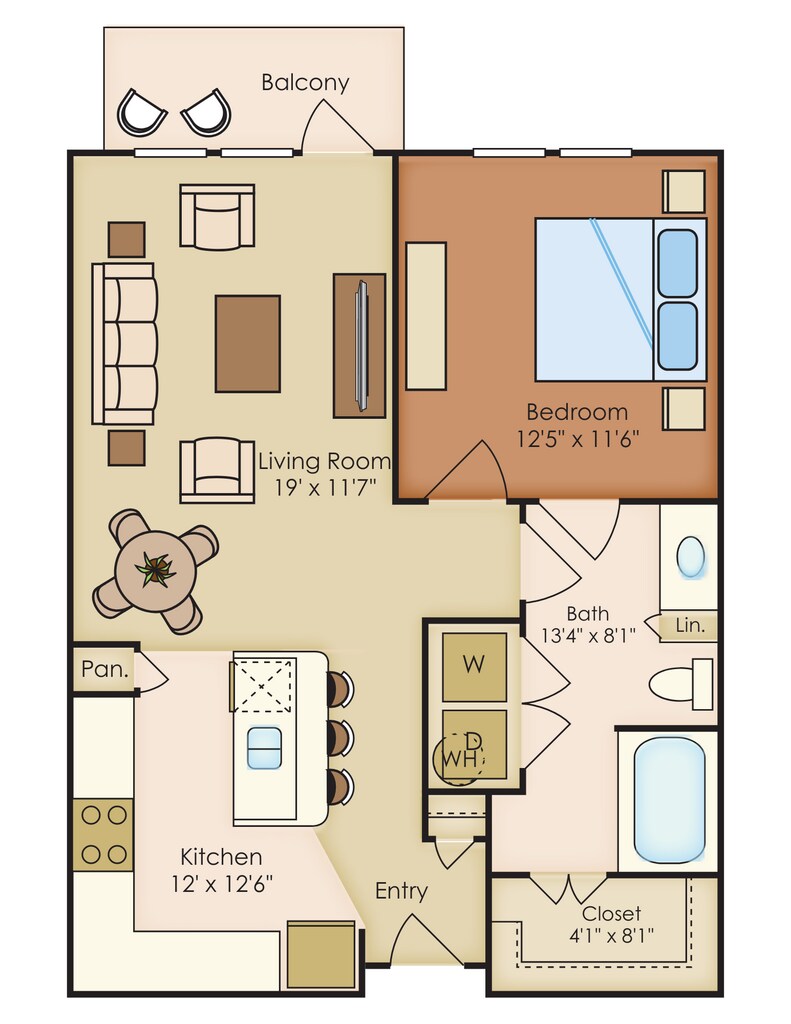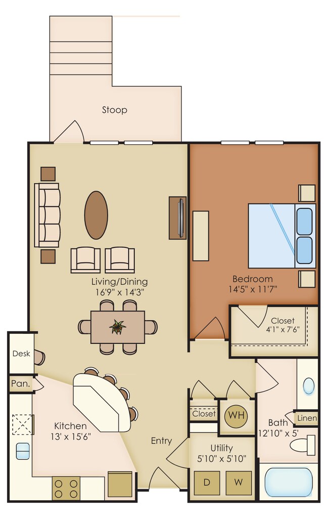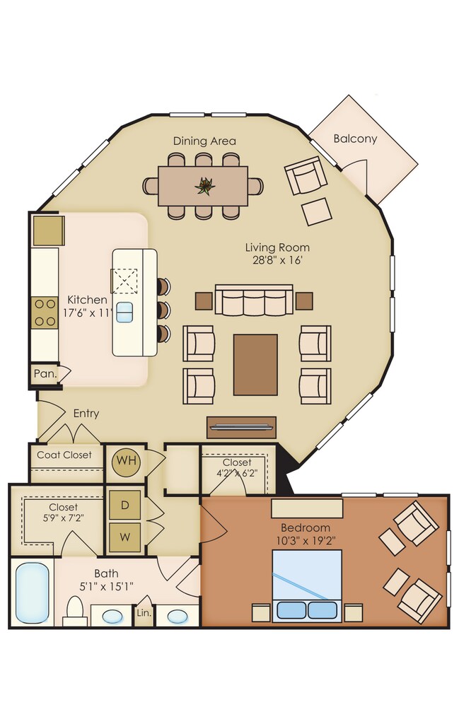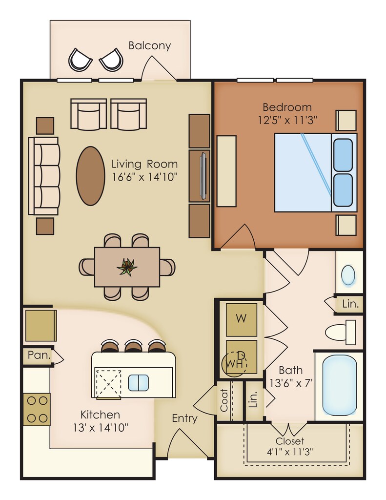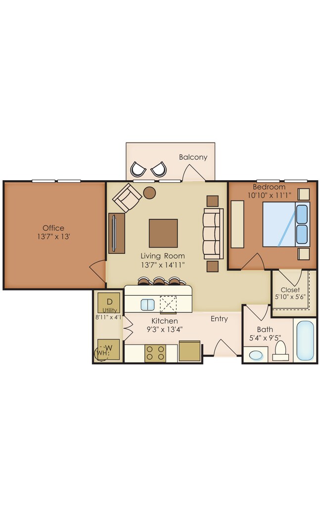 Studio, 1 Bath, 617 sq ftModel Gallery