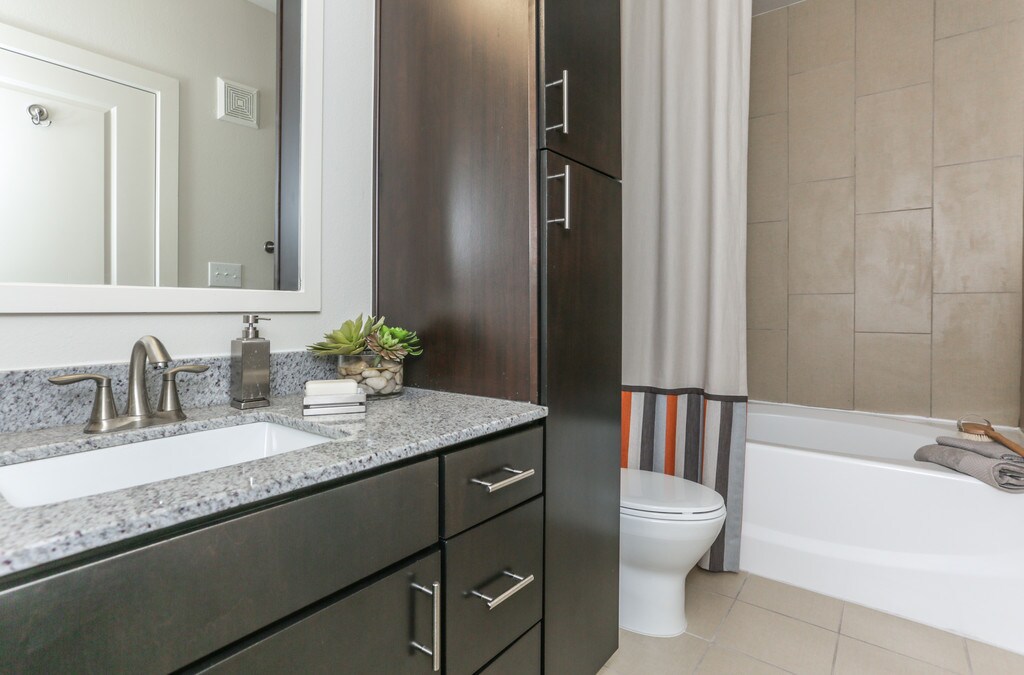 Make our apartments on the Northwest Side of San Antonio your new home. The Residences at La Cantera features spacious studio, one bedroom, two bedroom, and three bedroom apartments for rent in San Antonio with amazing amenities. Each home has luxurious details like granite counters, pendant lighting, and brushed nickel hardware. Designer kitchens include stainless steel appliances and under-mounted sinks with designer fixtures. Not to mention, residents have the added convenience of having a private balcony and an in-unit washer and dryer. Residents of our luxury apartments in San Antonio also have exclusive access to our fitness center, rooftop garden, spa, spacious clubhouse, and more! Our apartments near the University of Texas San Antonio are perfectly situated within The Shops at La Cantera and are close to I-10 and E Charles William Anderson Loop, so residents are never far from the best dining, shopping, and entertainment. Come home to our San Antonio apartments and schedule a visit to The Residences at La Cantera today!