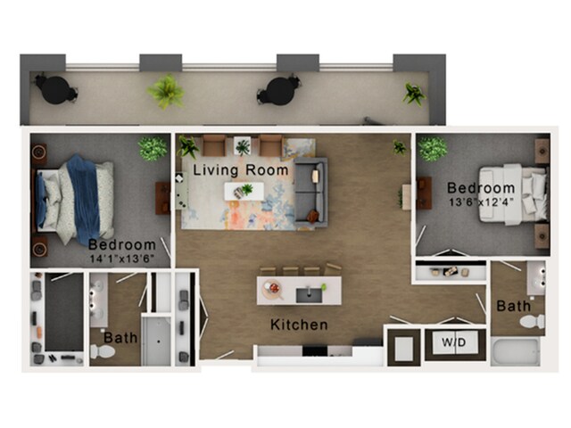 2 Beds, 2 Baths, 1153 sq ftModel Gallery