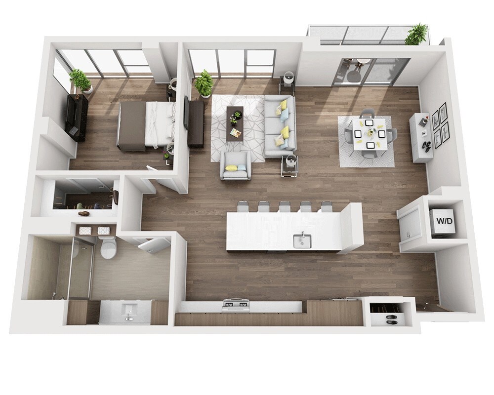 1 Bed, 1 Bath, 657-695 sq ftAvailable NowModel Gallery