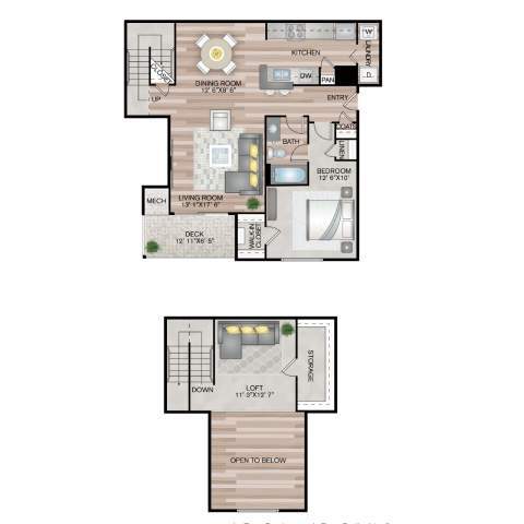 Apartment Model: The Appleton with LoftCall For Rates1 Bedroom, 1 Bath, 987 sq ftUnavailableThe Appleton with Loft - Floorplan 1 The Adams with Loft