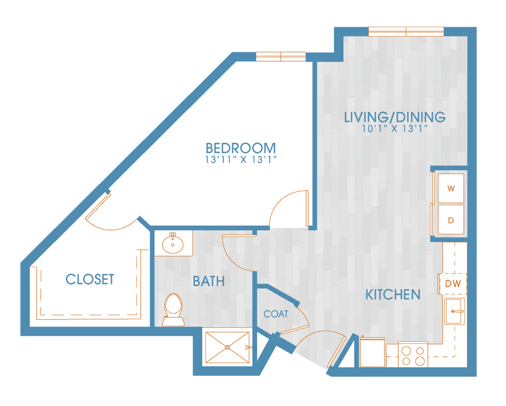 Apartment Model: 1x1 AFrom $1,7501 Bedroom, 1 Bath, 590-594 sq ftAvailable Now![]()