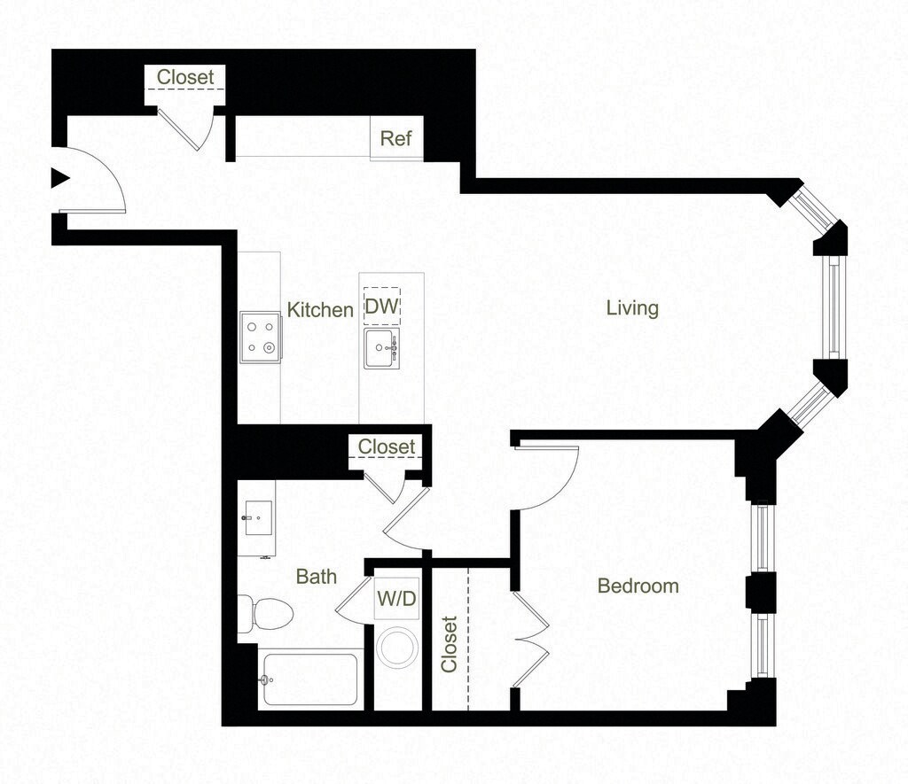 1 Bed, 1 Bath, 607-608 sq ftAvailable NowModel Gallery